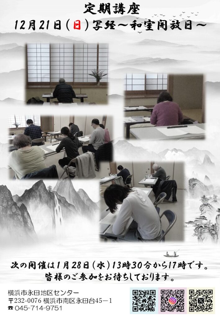 11/s26(水空高し錦秋の候、当館の定期講座【写経の時間~和室開放日~】にご参加いただいた皆様誠にありがとうございました。