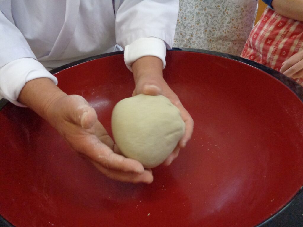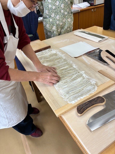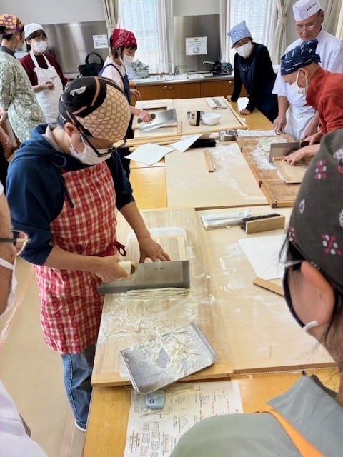 | 実際の様子 | 11/16(日)手打ちそば体験教室を実施しました。定員は12名でしたがたくさんの方に申し込みいただきすぐに満員となりました。 横浜蕎麦打研究会より細谷様、金子様、船越様の3名の講師に来ていただきました。 4人のグループに講師の方が一人ずつついて下さり丁寧に教えていただきました。 実際にそば打ちを体験してみると水かげん、力の入れ方、またいくつもの工程がありとても繊細なものだと感じました。 打っていくと新そばの香りが漂ってきます。 打ちたてのお蕎麦を皆で試食です。 楽しい体験、美味しい食事は自然と笑顔になります、よりお蕎麦が好きになりましたと感想をいただきました。 ご参加の皆様、横浜蕎麦打研究会様ありがとうございました。
