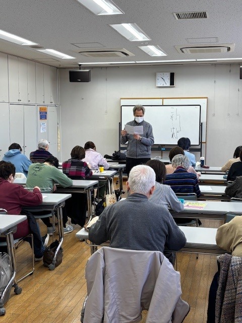 | 実際の様子 | 1/25から始まった「古典に親しむ~枕草子~」(全6回)が3/22に終了いたしました。途中、雪などの事情で開催日が変更となりご参加者の皆様にはご不便おかけしましたことを、改めてお詫び申し上げます。今回お申込みいただきました21名の方、多くの方が最終回までご参加頂き、6回の講義の出席者総数は107名となり、一部の方からは「もう少し続けて欲しい」というご要望を承りました。1000年前の人たちが見た風景、感じたものを講師の新井先生のお話しで再現いただき、参加された多くの方が、それを感じて頂いた様子でした。 後半の講義では、スタッフとして裏方をしておりました私も、この講座を続けたく想いました。題材、講師の先生のお話し、参加された皆様のすべてが、とても素晴しく、このような感じになったと思います。ご参加下さいました皆様、本当にありがとうございました。