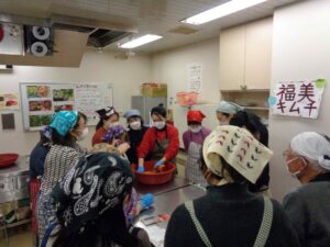 | 実際の様子 | 2/11(水・祝)キムチ作り体験を実施し16名様にご参加いただきました。 福美さん協力の「キムチ作り体験」、昨年度初めて実施し大変ご好評をいただきましたので今年度も実施することにいたしました。今回は申込開始とほぼ同時に満員となり、関心の高さが伺えます。