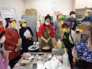 前半はキムチに関するお話を聞き、キムチヤンニンの材料や酸っぱくなったキムチの試食を楽しんでいただきました。