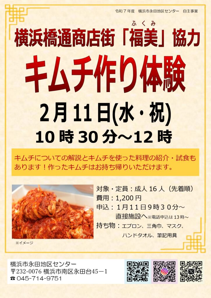 | 講座名 | 横浜橋通商店街「福美」協力 キムチ作り体験 |