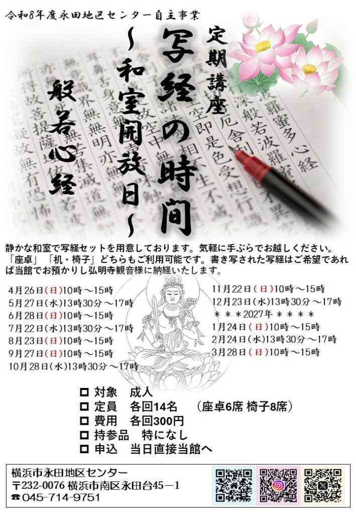 | 講座名 | 定期講座 写経の時間~和室開放日~ |